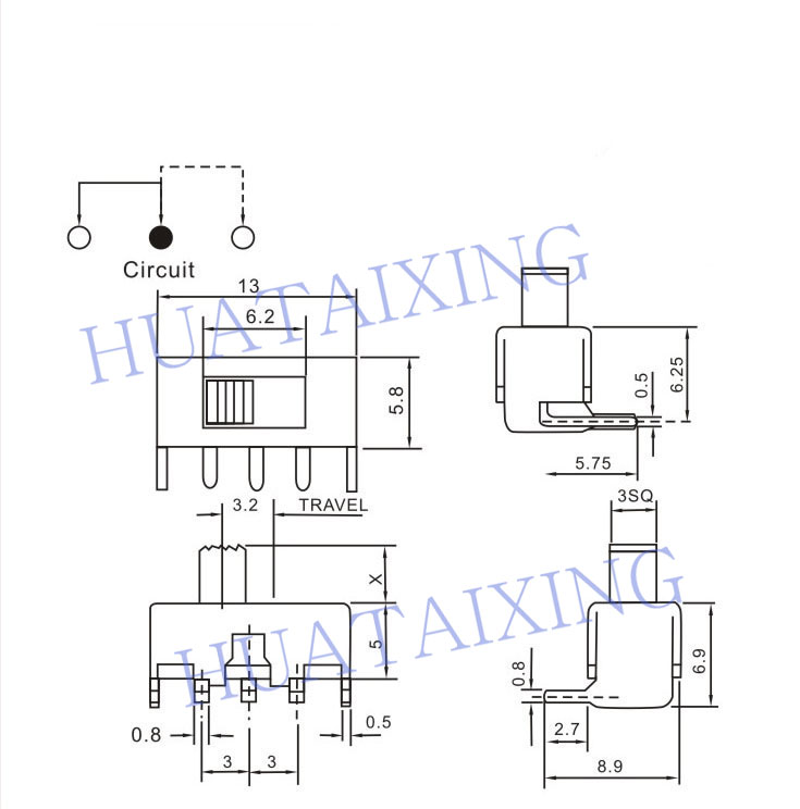 拨动开关 SS-12F23展示: 参考尺寸图: